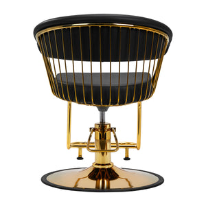 The comfortable chair is filled with durable and deformation-resistant foam, which ensures long-term use, high comfort and convenience even during long-lasting treatments. The upholstery is made of pleasant-to-the-touch synthetic leather. Using such material makes the equipment resistant to moisture, durable and easy to clean. Covering in shades of black and decorative elements in gold colors give it an expression of timeless elegance. All metal surfaces are polished. The Lille hairdressing chair is distinguished by a tasteful finish, which gives it an exclusive character and makes it look great in many professional salons.