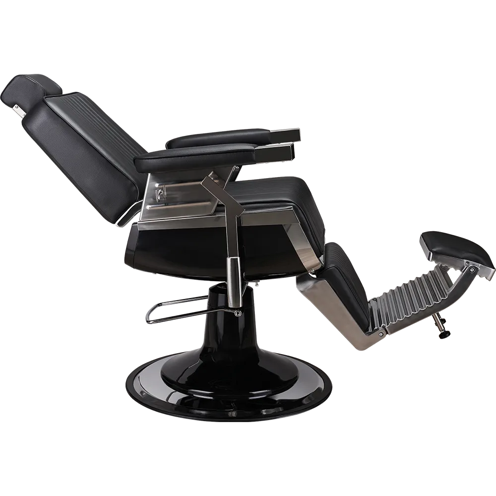 The DARK chair is a combination of modern form, exceptional comfort and elegant design – designed with modern barber shops in mind, which focus on functionality and style. Black upholstery