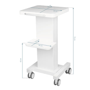functional, metal table with rubber wheels with a locking function. Perfect as a table for a cosmetic device. it has a stable shelf for the device and another shelf for accessories, and thanks to the wheel, the table is mobile and easy to move. the piece of furniture provides convenience and comfort during work.