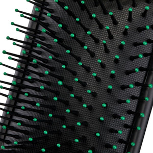 A flat and pneumatic brush with synthetic bristles with rounded tips is perfect for everyday use. The brush detangles dry and wet hair quickly and without jerking.