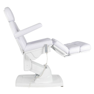 modern electrically adjustable cosmetic chair, ensuring comfort during the treatment not only for patients but also for the persons performing the procedure. 4 quiet electric motors enable quick and convenient adjustment of the chair by remote control. Optionally, it is possible to connect a foot switch, code 133026. The seats have a contoured and very comfortable seat, they are durable and very stable. the special design of the footrest facilitates pedicure and podiatry treatments. up-down adjustment range allowing for individual adjustment of the chair height to the height of the person performing the procedure and the type of treatment