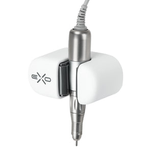 The universal EXO holder designed to hang the nail drill head near the workplace. The possibility of sticking it to a wall, desk or podiatry cabinet in the most convenient place to make the use of the device as efficient as possible. The holder protects the nail drill handle against accidental falls, reducing the likelihood of damage. Made of durable material, it guarantees stability and durability. Quick installation is ensured by a special sticker with mounting tape, which is part of the set. The product takes into account occupational hygiene issues – it is easy to clean and disinfect.