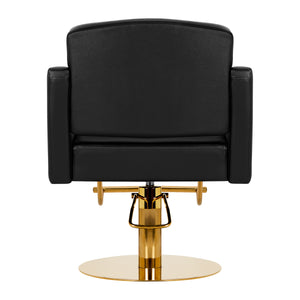 The comfortable piece of furniture is filled with deformation-resistant foam, and the upholstery is made of pleasant-to-touch synthetic leather. The materials used ensure comfortable use for a long time and make the equipment resistant to moisture, durable and easy to keep clean. Cover in shades of black and decorative elements in gold colors give it a timeless elegance. The Gabbiano Turyn hairdressing chair has a simple design, which makes the chair look great in many professional salons.