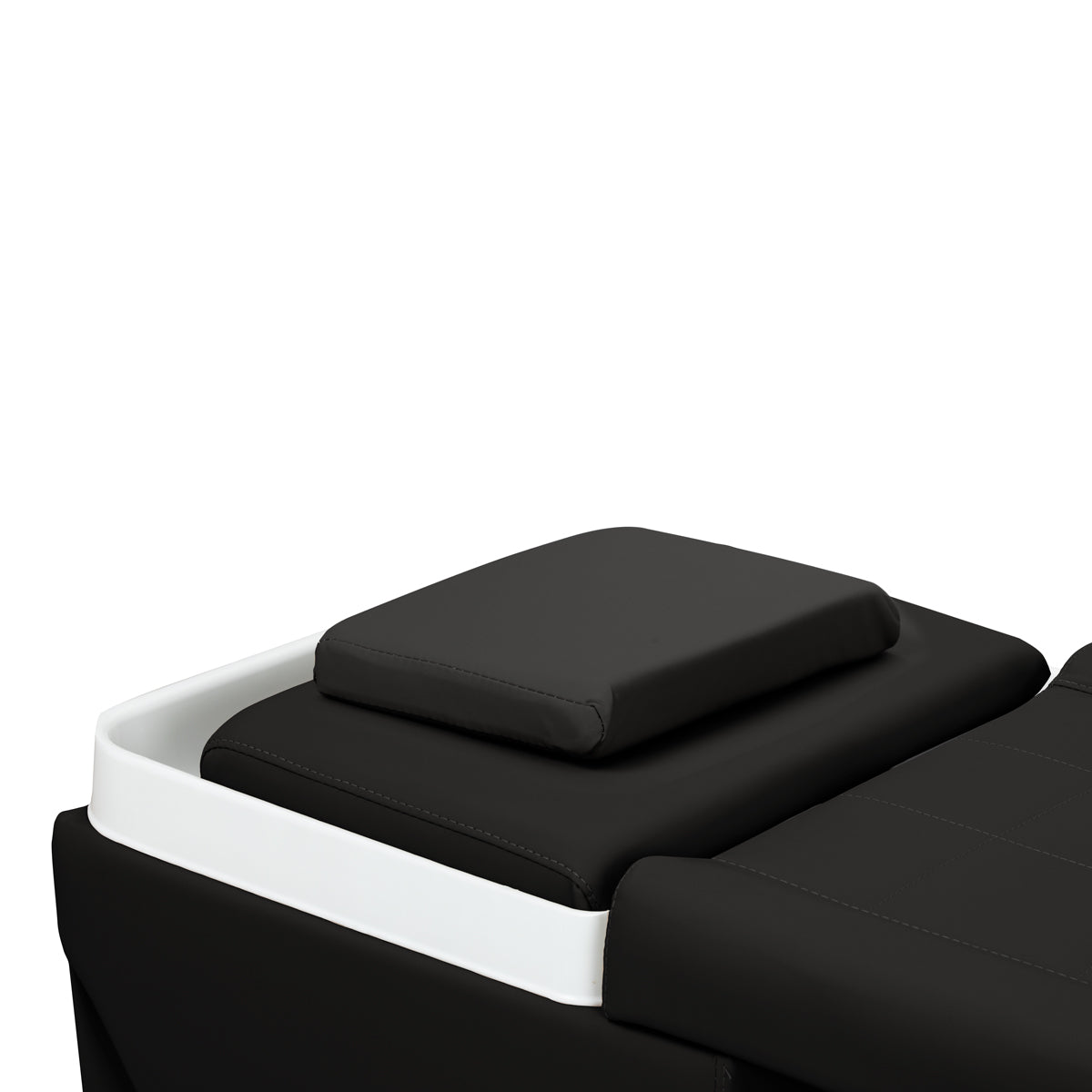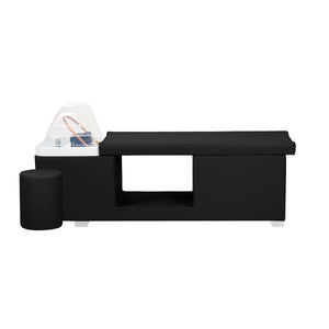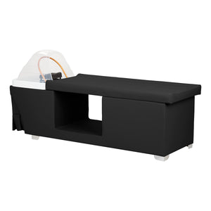 The Head Spa Maldives bed combines functionality with modern design. A sturdy frame, upholstered in elegant synthetic leather, ensures a stable structure. The ergonomically profiled surface in shades of black, covered with soft fabric, guarantees complete comfort during treatments. The additional space under the lounger allows for convenient storage of accessories, towels, and cosmetics, making it a practical and stylish addition to any professional beauty and wellness salon.