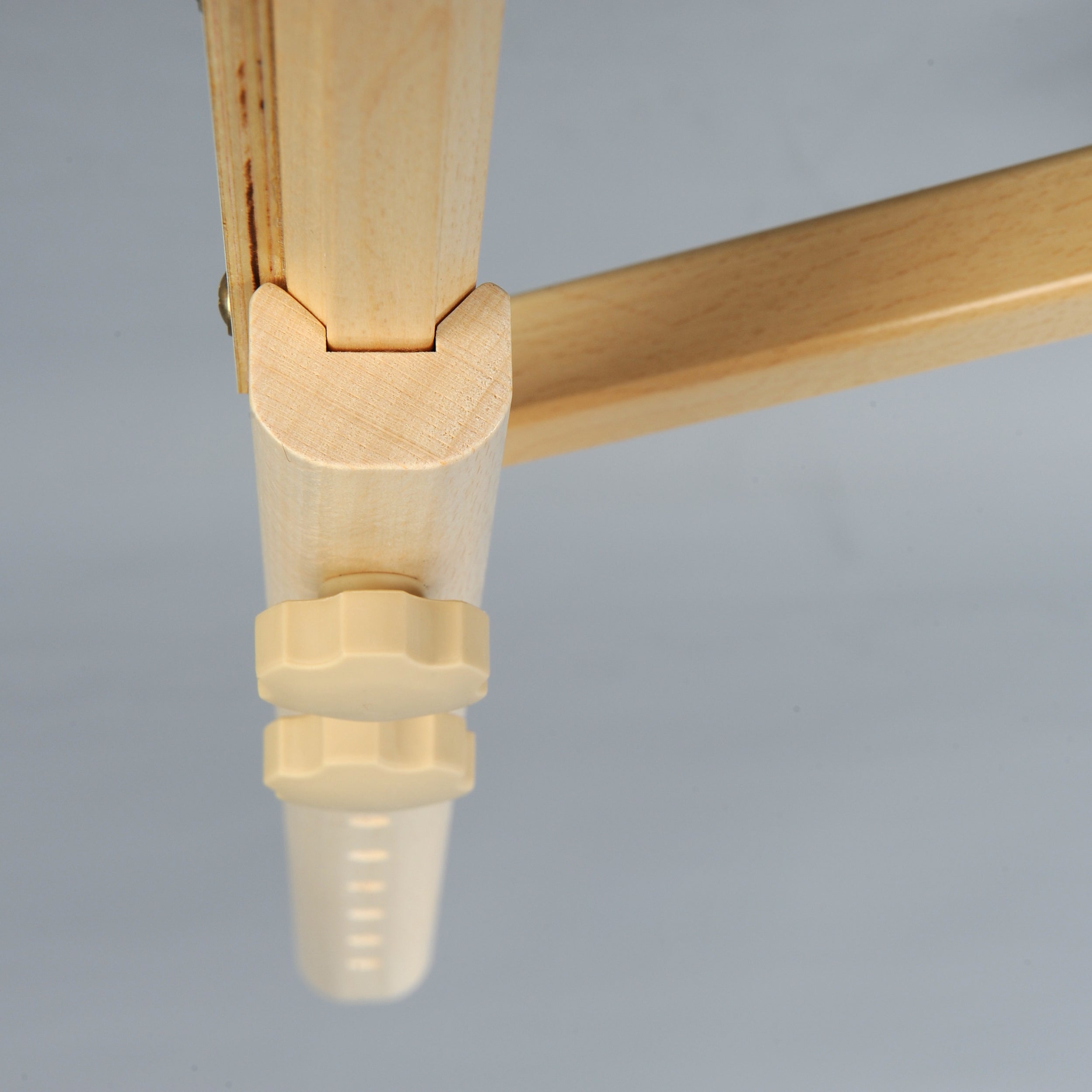 The table is designed to ensure a comfortable massage experience and easy access to the patient. The raised plywood connecting the legs facilitates facial and foot massages, while the rounded tabletop improves accessibility. The table is refined in every detail.
