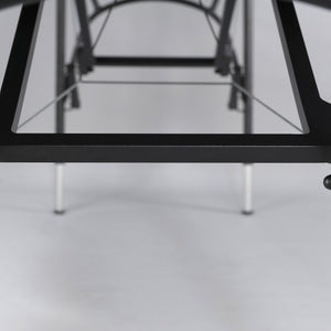 The unique tabletop construction deserves special attention, completely devoid of wooden elements, which contributes to the table's lighter weight. This makes the Luna Light massage table comfortable to carry and transport. It is perfect for mobile massage services with client visits. The U-shaped profile of the aluminum legs ensures high stability and facilitates access to the patient. The Luna Light massage table has quick and easy height adjustment thanks to the special leg profile. The table is refined in every detail.