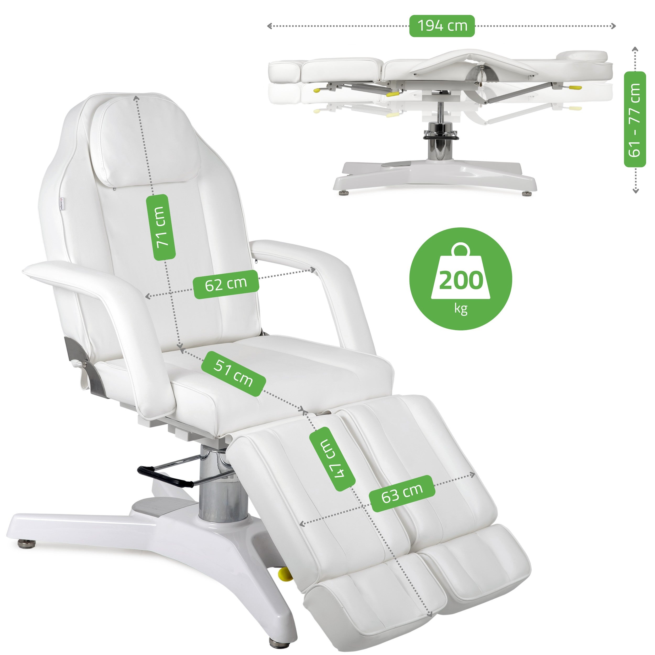 MAX Bianco hydraulic beauty chair with pneumatic adjustment