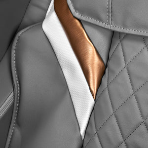 The comfortable interior of the chair is covered with pleasant-to-the-touch imitation leather in grey tones. The use of such material makes it highly resistant to moisture and easy to clean. The white and gray materials used on the outer parts of the chair and the rose gold decorative element give the product a characteristic, elegant look that distinguishes it from others. The carefully made hems give it a stylish look, and the solid construction guarantees long use. A compact model with an aesthetic finish and classic color scheme will fit perfectly into any interior. The Sakura Classic 802A massage chair is the perfect way to relax at any time, especially after an exhausting day or a hard workout.