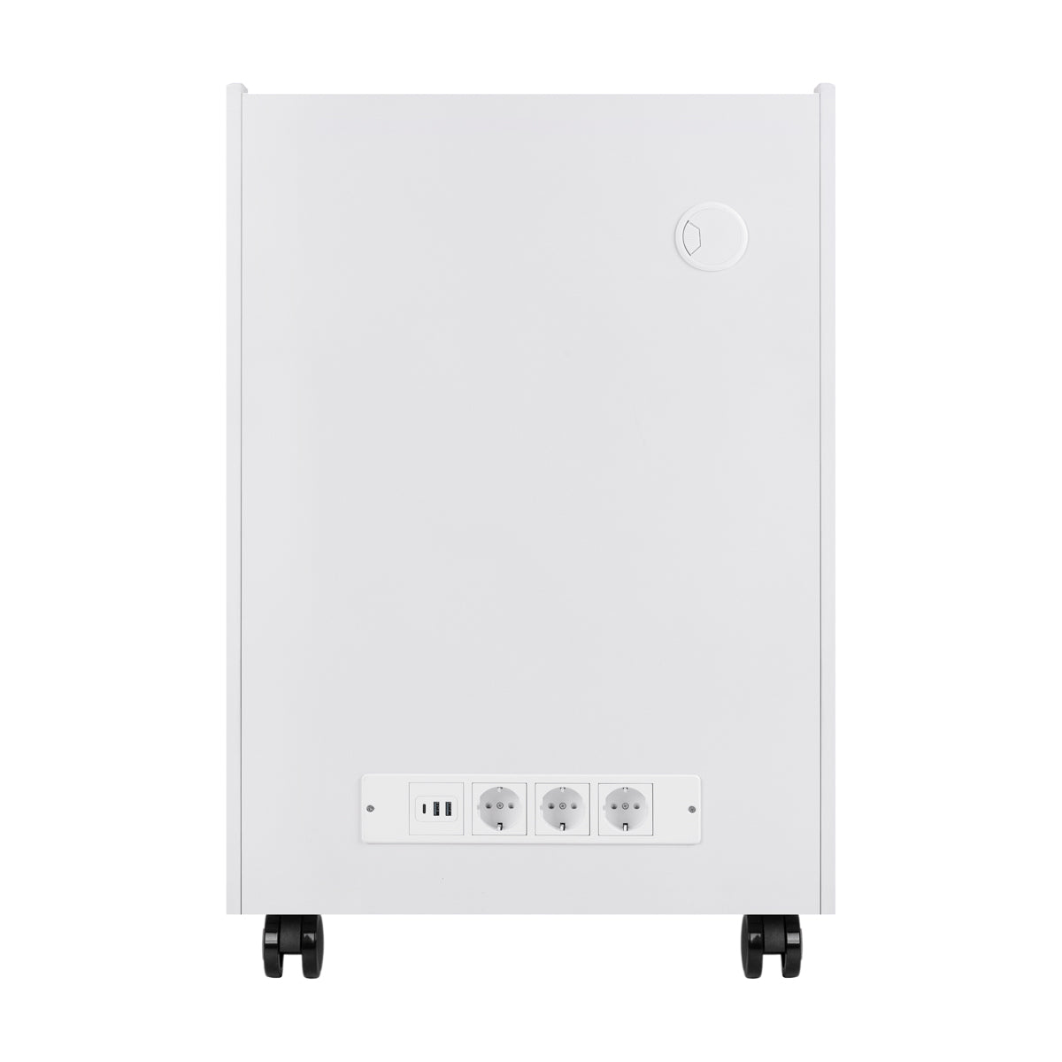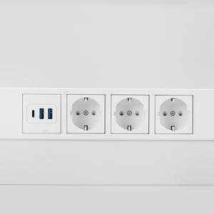 The assistant has a rear panel with three network sockets, two USB ports and one USB-C port, allowing for convenient connection of various types of devices. Cable grommets located in the walls near the top drawer help to keep things tidy. The integrated magnifying lamp holder allows the lamp arm to be securely mounted close to the treatment area without taking up space on the worktop, promoting precise lighting and ergonomic working.