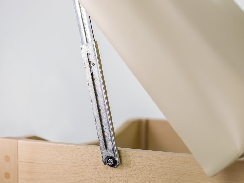 Exceptionally comfortable, two-section couch with adjustable height, equipped with a practical shelf for accessories and cosmetics.
