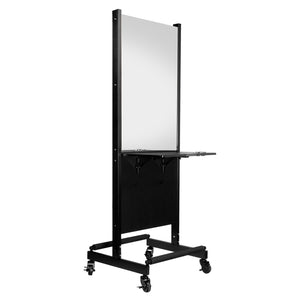 Gabbiano frisörstation är en professionell möbel utrustad med två speglar. Smidigt rullande hjul möjliggör snabb och problemfri förflyttning av stationen till valfri plats. Stabil, svart pulverlackerad metallkonstruktion