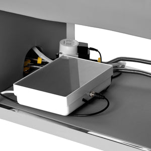 Head Spa 017 SPA-sängen är en kombination av funktionalitet och modern design. Utrustad med en solid ram i rostfritt stål garanterar den stabilitet och hållbarhet. Den ergonomiskt profilerade sängen är klädd med mjukt syntetiskt läder i grå nyanser, vilket säkerställer maximal komfort under behandlingar. Dessutom möjliggör utrymmet under sängen bekväm förvaring av kosmetika och tillbehör, vilket gör den till ett utmärkt val för professionella skönhets- och friskvårdssalonger.