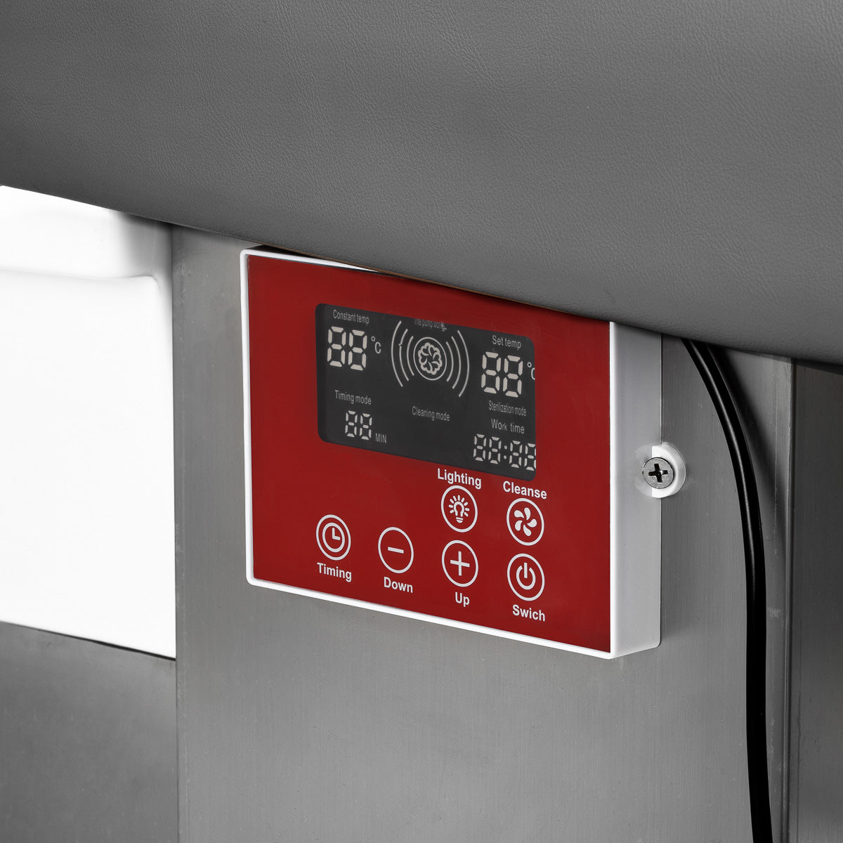 Den intuitiva touchpanelen ger full kontroll över tvättenhetens funktioner. Den låter dig justera drifttiden och vattentemperaturen, samt övervaka deras aktuella värden. Tack vare den inbyggda displayen kan du när som helst kontrollera hur länge enheten har varit igång. Panelen låter dig också aktivera ljusterapifunktionen, det vill säga belysning av skålen, vilket skapar en atmosfär av avkoppling och lyx. Dessutom är ångterapiapparaten utrustad med en fjärrkontroll, vilket möjliggör bekväm fjärrstyrning.