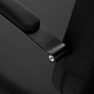 The ergonomically profiled chair with durable foam filling ensures high comfort of use. The subtly curved, partially upholstered armrests allow for correct shoulder positioning and are an attractive visual element. The comfortable backrest guarantees stable back support and the correct position during the treatment. The black upholstery combined with decorative metal elements gives the whole a timeless, elegant character. The materials used are distinguished by their durability and ease of cleaning. The original form of the wash unit gives the interior a unique character. The set includes complete fittings, including a tap, shower head and dedicated hoses, ensuring full readiness for use.