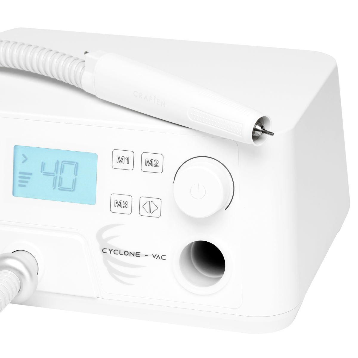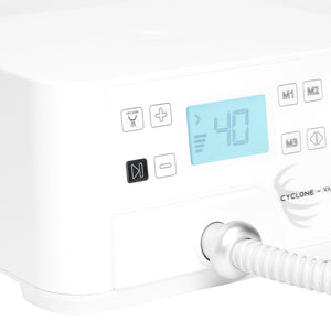 Estetisk, futuristisk design i vita nyanser passar perfekt in i alla interiörer. En speciell hållare för handstycket möjliggör ett bekvämare arbete, och halkfria fötter säkerställer stabilitet. Saeyang Cyclone-Vac fotvårdsmaskin med utsug omfattas av 12 månaders garanti.