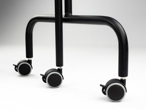 Skärm tillverkad av stål belagd med hållbar svart pulverlack. Speciella hjul med bromsar möjliggör bekväm förflyttning och stabilisering, även på hala underlag. Skärmarnas attraktiva färger innebär att de, förutom funktionalitet, framhäver interiörens moderna karaktär. Skärmens svarta matta färg på konstruktionen korresponderar perfekt med den moderna designen på Agila stationära massagebänkar.