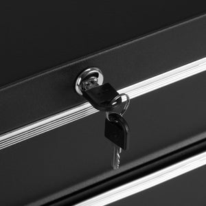 Modellen är utrustad med fem rymliga lådor, vilket ger gott om plats för nödvändiga verktyg, hygienprodukter och engångstillbehör. Den genomtänkta layouten främjar ordning och korrekt organisering av arbetsytan. Ett nyckellås förhindrar att lådorna dras ut okontrollerat och möjliggör säker förvaring av mer ömtålig utrustning eller dokumentation.