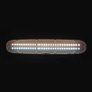 en elegant arbetslampa av hög kvalitet monterad i ett bordsstöd som är perfekt för arbetsplatser som kräver intensiv belysning. den är mycket estetisk, vilket gör den perfekt för kosmetiska, veterinära, medicinska och dentala mottagningar, verkstäder och protetiska laboratorier. lampan är utrustad med lysdioder med justerbar intensitet och färgtemperatur. tack vare den långa skärmen belyser den jämnt en stor arbetsyta. pålitlig vid alla kosmetiska behandlingar - många positiva omdömen på branschforum.